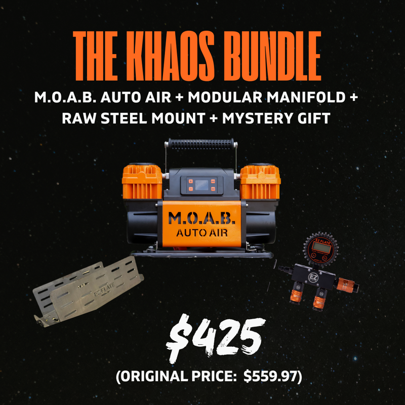 Introducing the Khaos Bundle — named after our Ultra4 4600 race Jeep, “Khaos.” Our little race XJ is built for high speeds, brutal terrain, and the occasional rollover - making the Lock-N-Load Mount + M.O.A.B. Auto Air + Modular Manifold the ultimate secure, race-ready air setup for any rugged demands.